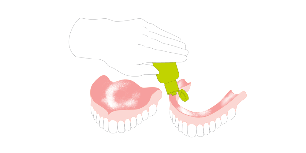- Levitä ohut kerros IsoDent hammasproteesien kiinnitysjauhetta ikeniä ja kitalakea vasten asettuville pinnoille.