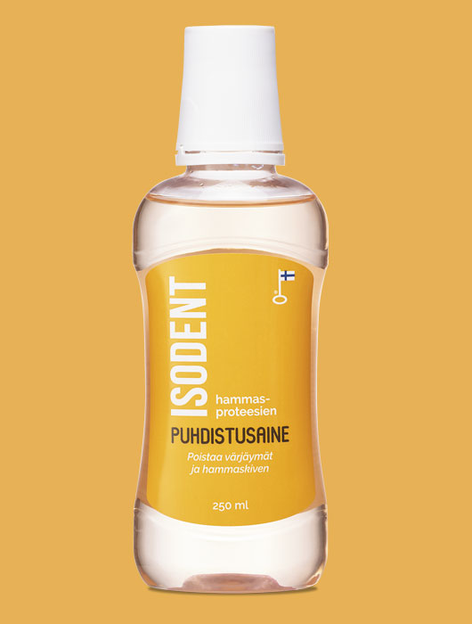 Bakteerien, sienikasvustojen ja värjäytymien lisäksi se liuottaa proteesistasi myös hammaskiven. IsoDent on nestemäinen tiiviste ja se myydään riittoisassa 250 ml pullossa, joka kestää yhdellä käyttäjällä jopa 3 kuukautta päivittäisessä käytössä.