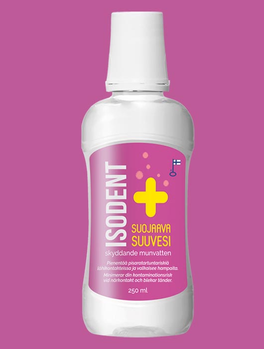 Suojaava suuvesi pienentää oleellisesti syljen mikrobipitoisuutta (myös mahdollisen Covid-19 viruksen määrää), ehkäisten tehokkaasti virukselle altistumista.